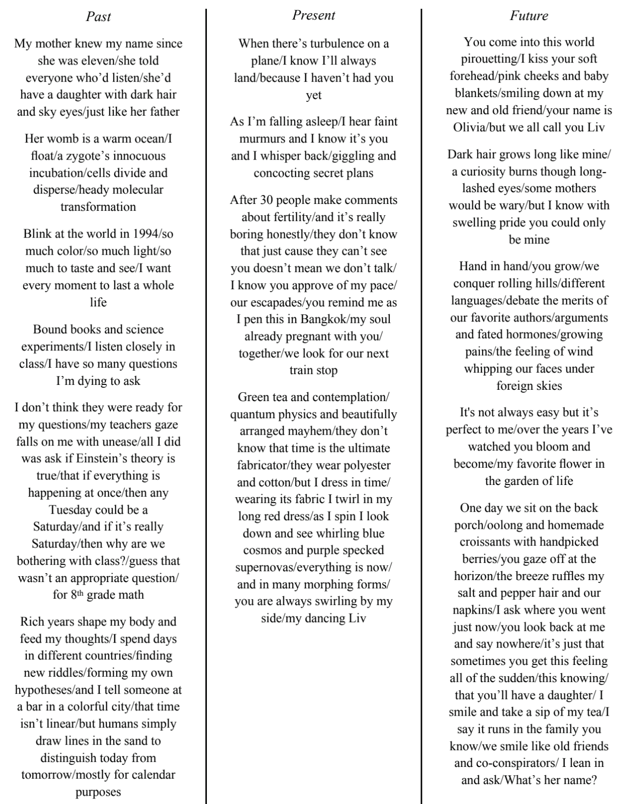 Sarah Wolfe’s work has appeared or is forthcoming in publications including The Orchard Poetry Journal, Cathexis Northwest Press, Synkroniciti, Bitter Melon Review, Willows Wept Review, Misfit Magazine, Academy of the Heart and Mind, and other places. She earned a BA in Communication and Media Arts from Montclair State University, with minors in English and Film. This piece was first published in Ivy Lit.